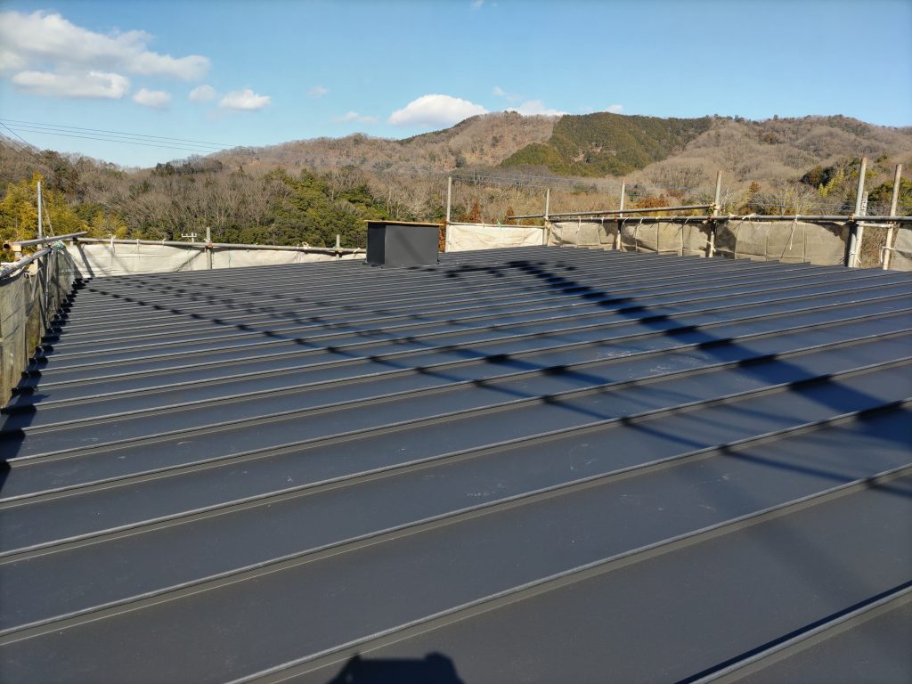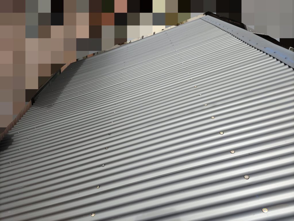 セメント瓦から鉄板大波に葺き替えました。築年数30年以上経っている建物によく見かけるセメント瓦ですが、下葺き材にフェルトが使われており穴だらけになっているということがほとんどです。雨漏りをしたら葺き替えを検討されてもよいかもしれません。
